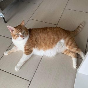 Tony is super chill and calm, he has the best temperament! This boy is the sweetest cat in the world, loves giving lots of kisses and headbutts! He is good being around other friendly cats. He’s a little chubby so should have scheduled meals.
